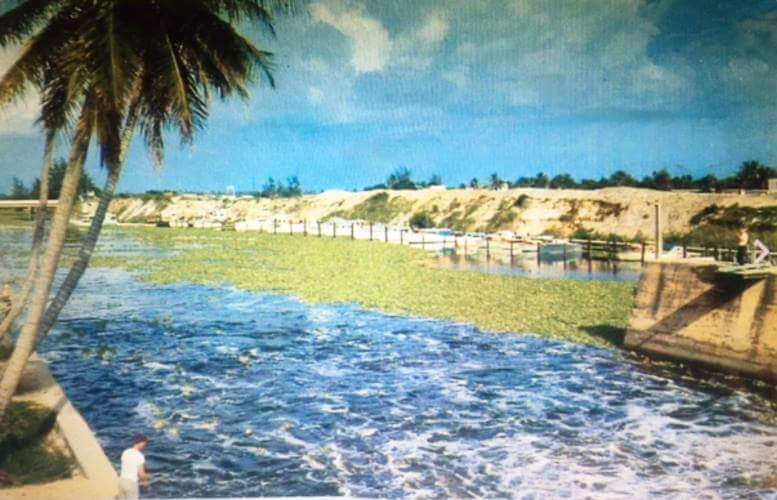 | This view is prior to construction of the S-155 Spillway structure. Bottom left you can see a man fishing from what is now called Spillway Park in the City of Lake Worth. ‘Back in the day’ Mr. Buddy Tuppen and Mr. Jay Fearnley used to go fishing in that very same spot. |